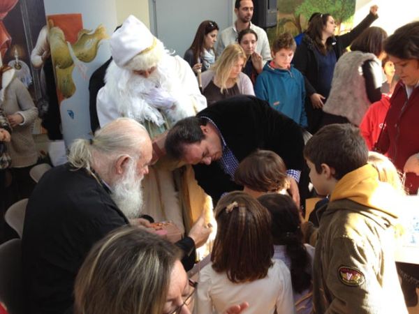 Ο Αρχιεπίσκοπος παρακολούθησε το εορταστικό πρόγραμμα που είχαν ετοιμάσει τα παιδιά, μοίρασε δώρα και απευθυνόμενος στους γονείς και τα παιδιάαναφέρθηκε στις δυσκολίες που αντιμετωπίζει η χώρα μας λέγοντας: