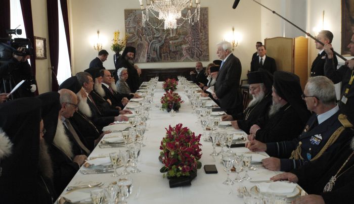 «Μακαριώτατε, σεβασμιώτατοι, άγιοι πατέρες, χριστεπώνυμο πλήρωμα, αποδέχομαι την ύψιστη αυτή διάκριση εκ μέρους της Εκκλησίας της Ελλάδος, ομολογώντας ευθέως ότι γνωρίζω εκ προοιμίου πως η ως άνω διάκριση δεν αφορά το πρόσωπό μου, αλλά τον Θεσμό του Προέδρου της Δημοκρατίας. Ο οποίος έχει, κατά τον όρκο του, ως πρώτιστο καθήκον την τήρηση του Συντάγματος, ιδίως δε την τήρηση των διατάξεων που ορίζουν ότι ο Πρόεδρος της Δημοκρατίας είναι Ρυθμιστής του Πολιτεύματος. Επομένως, και θεματοφύλακας των αρμονικών, πάντα στο πλαίσιο του Συντάγματος, σχέσεων μεταξύ Εκκλησίας και Πολιτείας.