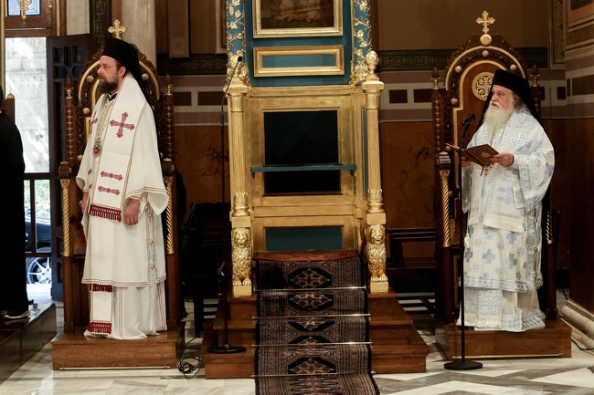 ΑΡΧΙΕΠΙΣΚΟΠΗ ΑΘΗΝΩΝ: Στον Ιερό Μητροπολιτικό Ναό Αθηνών τέλεσε σήμερα, Κυριακή της Πεντηκοστής, το μυστήριο της Θείας Ευχαριστίας ο Αρχιεπίσκοπος Αθηνών και πάσης Ελλάδος κ. Ιερώνυμος, ενώ συλλειτούργησαν οι Επίσκοποι Ωρεών κ. Φιλόθεος, Αρχιγραμματέας της Ιεράς Συνόδου της Εκκλησίας της Ελλάδος και Ρωγών κ. Φιλόθεος.