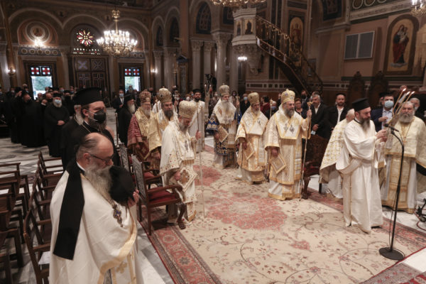 Συμπροσευχόμενοι παρέστησαν οι Σεβασμιώτατοι Μητροπολίτες Διδυμοτείχου κ. Δαμασκηνός, Ναυπάκτου κ. Ιερόθεος, Μεσογαίας κ. Νικόλαος, Αλεξανδρουπόλεως κ. Άνθιμος, Κορίνθου κ. Διονύσιος, Κηφισίας κ. Κύριλλος, Γλυφάδας κ. Αντώνιος, Νικοπόλεως και Πρεβέζης κ. Χρυσόστομος, Μαρωνείας και Κομοτηνής κ. Παντελεήμων, Ιερισσού κ. Θεόκλητος, Φιλίππων κ. Στέφανος, Φθιώτιοδος κ. Συεμών, Λαρίσης κ. Ιερώνυμος και οι εψηφισμένοι Μητροπολίτες Κιλκισίου κ. Βαρθολομαίος, Περιστερίου κ. Γρηγόριος και Θήρας κ. Αμφιλόχιος, καθώς και ο Αρχιγραμματέας της Ιεράς Συνόδου, Θεοφιλέστατος Επίσκοπος Ωρεών κ. Φιλόθεος.