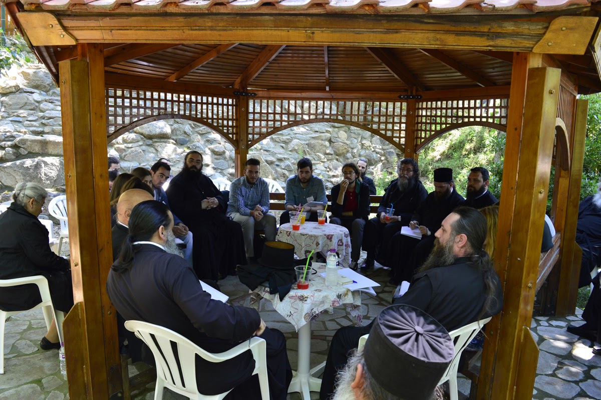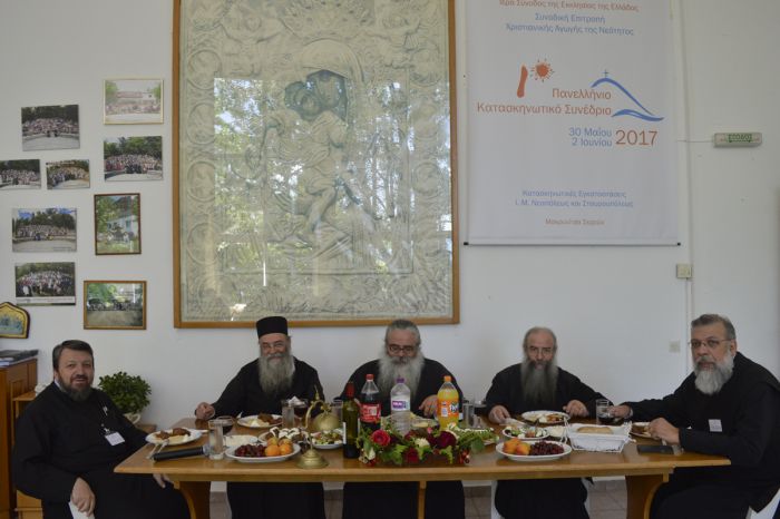 Μετά το τέλος του προσκυνήματος και την επιστροφή των συνέδρων στη Κατασκήνωση, ακολούθησε Δείπνο. Στο δείπνο ήρθε και ο Πανοσολ. Αρχιμανδρίτης π. Αθηναγόρας Λουκατάρης, Κληρικός της Ι. Μ. Νεαπόλεως και Σταυρουπόλεως, γνωστό για την δράση του στην περιοχή του Δεντροπόταμου, στην ευαίσθητη κοινωνική κατηγορία των ΡΟΜΑ, ο οποίος διηγήθηκε την ιστορία και τη δράση του Ιδρύματος “Φάρος του Κόσμο”.