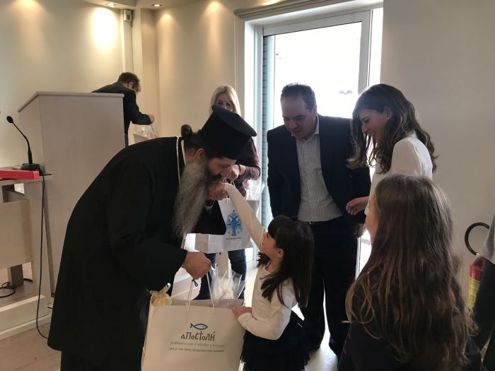 Πασχαλινά δώρα και λαμπάδες, ενόψει των γιορτινών ημερών, μοίρασαν στους εργαζόμενους της «ΑΠΟΣΤΟΛΗΣ» ο κ. Κωνσταντίνος Δήμτσας, Γενικός Διευθυντής του Οργανισμού και ο Πρωτοσύγκελλος της Ιεράς Αρχιεπισκοπής Αθηνών Θεοφιλέστατος Επίσκοπος Θεσπιών κ. Συμεών.