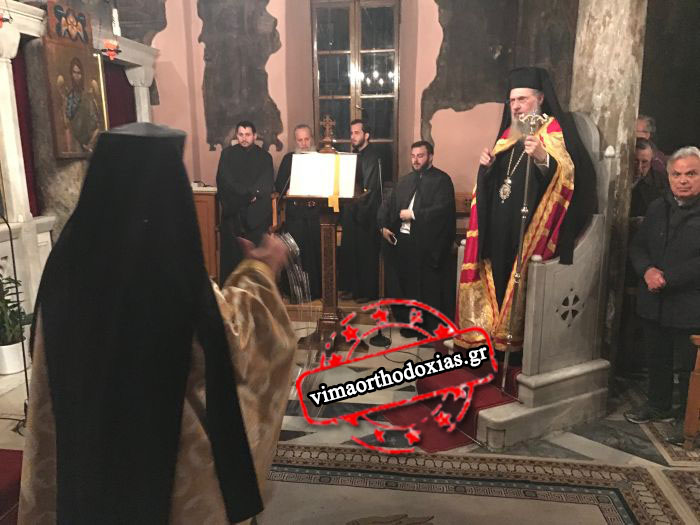 Οι πιστοί παρακολούθησαν με ευλάβεια την Ακολουθία στην οποία προεξήρχε ο Επίσκοπος Θαυμακού και Καθηγούμενος της Μονής, κ. Ιάκωβος.