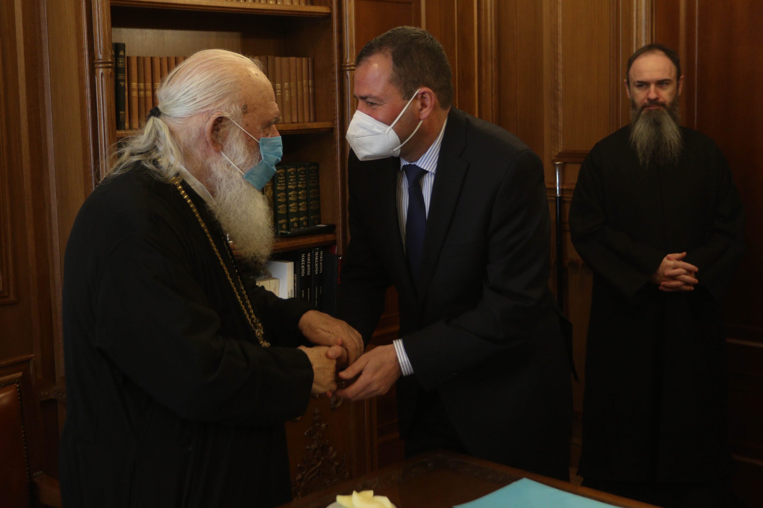 Κατά το διάλειμμα της Συνεδρίας, ο Μακαριώτατος δέχθηκε τους Κοσμήτορες και τους Προέδρους των Τμημάτων των Θεολογικών Σχολών του Εθνικού και Καποδιστριακού Πανεπιστημίου Αθηνών και του Αριστοτελείου Πανεπιστημίου Θεσσαλονίκης για θέματα συνεργασίας Ποιμαινούσης Εκκλησίας και Ακαδημαϊκής Θεολογίας.