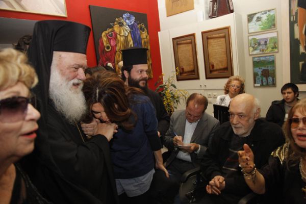Ο Αρχιεπίσκοπος έφτασε στο “Σπίτι του Ηθοποιού” συνοδευόμενος από τον πρωτοσύγκελλο της Ιεράς Αρχιεπισκοπής Αθηνών Πανοσ. Αρχιμ. Μάξιμο Παπαγιάννη, ενώ τους υποδέχθηκε η πρόεδρος του ιδρύματος Άννα Φόνσου.
