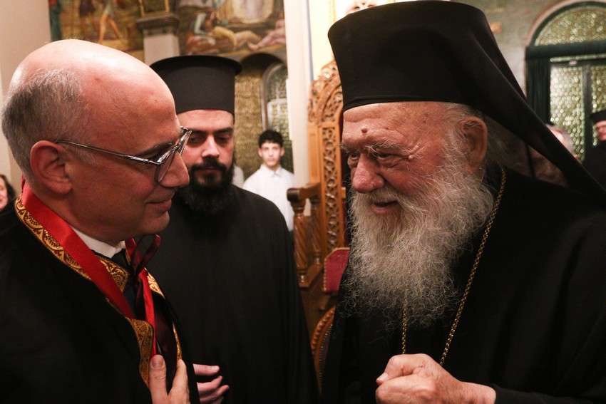 Με την προσευχητική και τιμητική παρουσία του Μακαριωτάτου Αρχιεπισκόπου Αθηνών και πάσης Ελλάδος κ.κ. Ιερωνύμου πραγματοποιήθηκε το απόγευμα του Σαββάτου 10 Ιανουαρίου η τελετή χειροθεσίας του Καθηγητού Χειρουργικής, ιατρού μεταμοσχεύσεων και θεολόγου κ. Γεωργίου Σωτηρόπουλου σε Άρχοντα Οφφικιάλιο της Μεγάλης του Χριστού Εκκλησίας, με την απονομή του οφφικίου του «Άρχοντος Ακτουαρίου».
