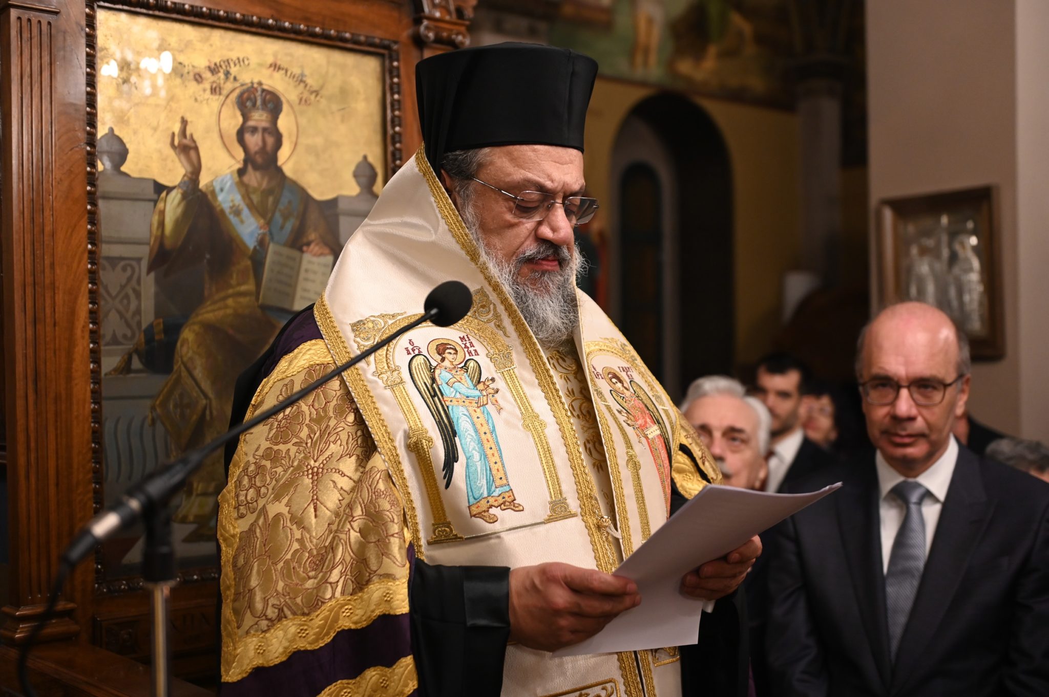 Της τελετής προηγήθηκε η Ακολουθία του Εσπερινού στον Ιερό Ναό Αγίου Νικολάου Πτωχοκομείου. Εκτός του Μακαριωτάτου, παρέστησαν ο Διευθυντής του Γραφείου Εκπροσωπήσεως του Οικουμενικού Πατριαρχείου στην Αθήνα, Σεβ. Μητροπολίτης Λαοδικείας κ. Θεοδώρητος, οι Σεβασμιώτατοι Μητροπολίτες Γλυφάδας κ. Αντώνιος και Μάνης κ. Χρυσόστομος, καθώς και ο Θεοφιλ. Επίσκοπος Τανάγρας κ. Απόστολος.