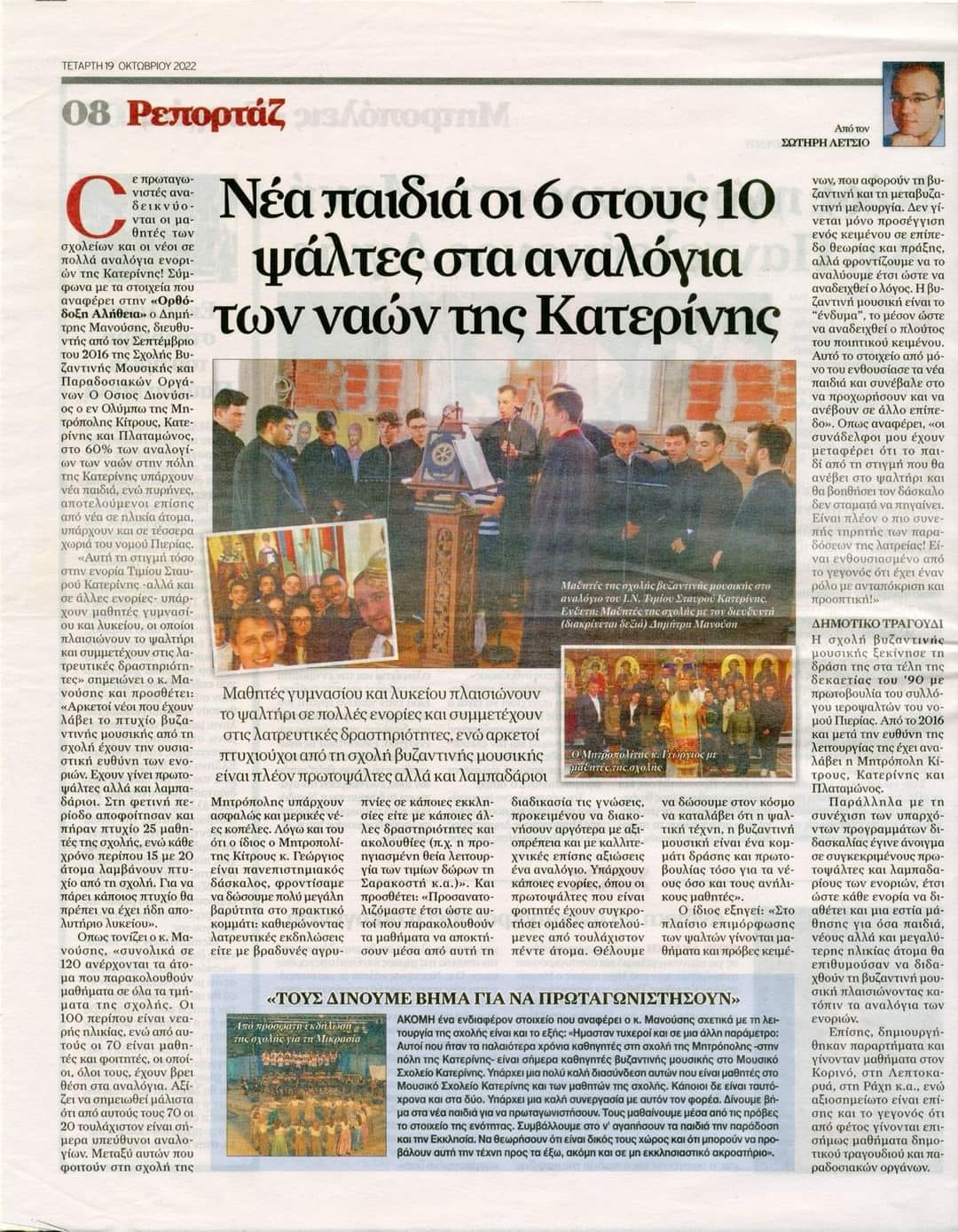 Αναλυτικό αφιέρωμα της Εφημερίδας Πανελλαδικής εμβέλειας ”Ορθόδοξη Αλήθεια” στη Σχολή Βυζαντινής Μουσικής και Παραδοσιακών Οργάνων της Ιεράς Μητροπόλεως Κίτρους, Κατερίνης και Πλαταμώνος.