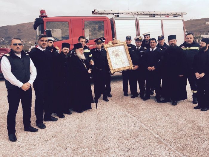 Στο λιμάνι του Γαυρίου κατέπλευσε σφυρίζοντας το πλοίο “Andros”. Παρατάχθηκαν οι Άνδρες των Σωμάτων Ασφαλείας και ο καπετάν Μάρκος Βλάμης και το πλήρωμα την παρέλαβαν στο πλοίο. Η εικόνα θα μεταβεί από την Ραφήνα στο εκπαιδευτικό ίδρυμα Θεομήτωρ στην Ηλιούπολη, που ίδρυσε ανδριώτισα μοναχή και εκ των υπευθύνων είναι ο ανδριώτης Νίκος Γουλιερμής. Θα μείνει εκεί μέχρι το απόγευμα. Στη συνέχεια θα ταξιδέψει αεροπορικώς για Κύπρο όπου θα εκτεθεί σε δημόσιο προσκύνημα στο ναό του Αγίου Γεωργίου στην Άνω Δευτερά στην Μητρόπολη Ταμασού και Ορεινής.