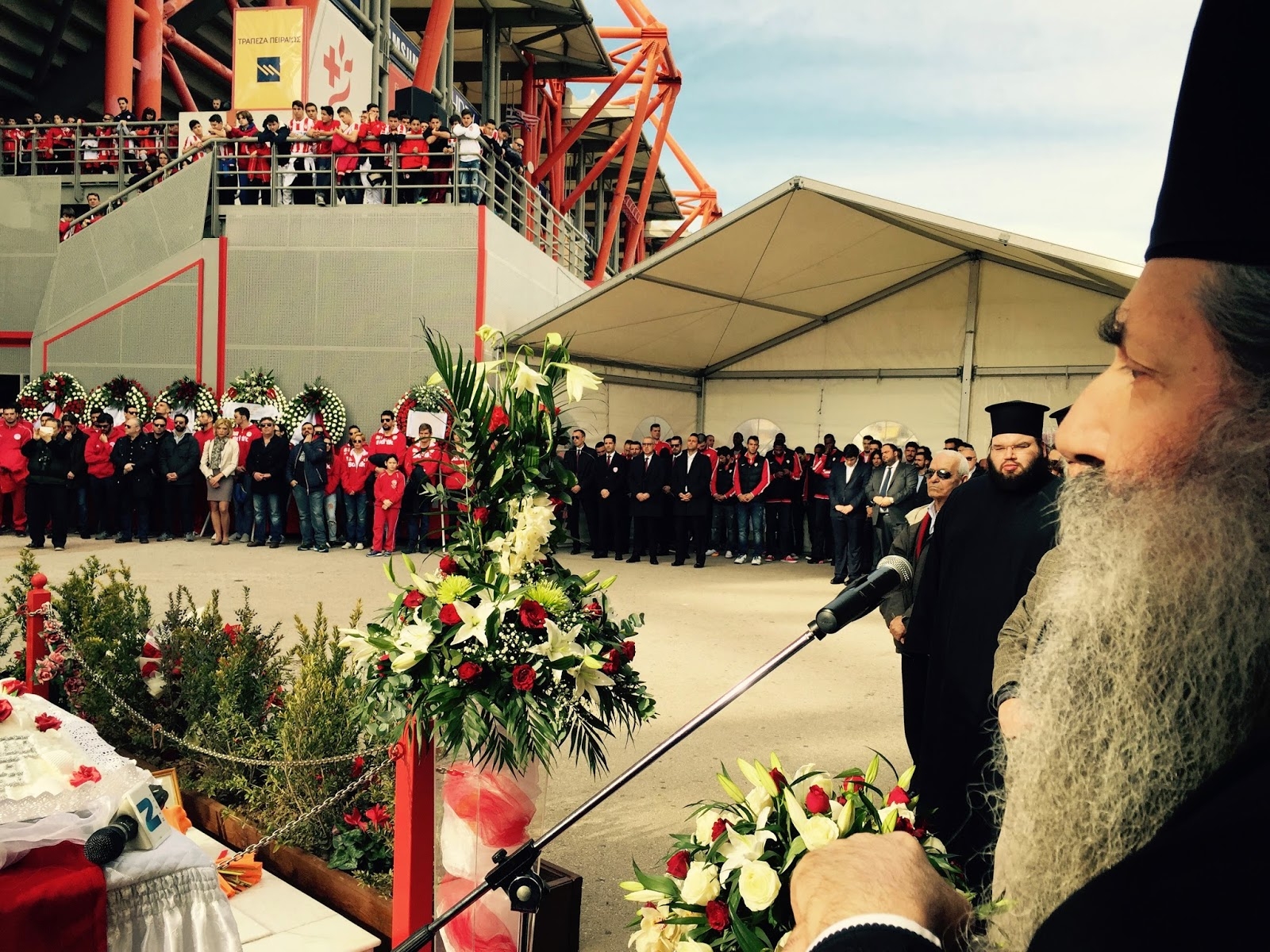 Παρόντες στην επιμνημόσυνη δέηση οι άνθρωποι των οικογενειών των θυμάτων, η οικογένεια του Ολυμπιακού, Ο Πρόεδρος της ομάδας κ. Βαγγέλης Μαρινάκης, μέλη της Διοίκησης, οι ποδοσφαιριστές και το τεχνικό επιτελείο, καθώς επίσης και και πλήθος κόσμου.