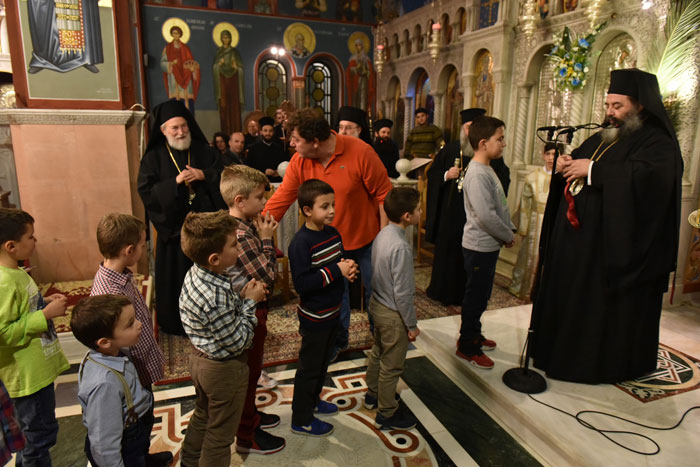 Της Ακολουθίας του Εσπερινού, χοροστάτησε ο Σεβασμιώτατος Μητροπολίτης Θεσσαλιώτιδος και Φαναριοφαρσάλων κ.κ. Τιμοθέου, συνχοροστατούντων των Σεβασμιωτάτων Μητροπολιτών Βρεσθένης κ.κ. Θεοκλήτου, Κηφισίας, Αμαρουσίου και Ωρωπού κ.κ. Κυρίλλου, Λαγκαδά, Λητής και Ρεντίνης κ.κ. Ιωάννου, του Θεοφιλεστάτου Επισκόπου Θερμών κ.κ. Δημητρίου, ενώ εκ του Ιερού Βήματος παρέστη συμπροσευχόμενος ο Σεβασμιώτατος Μητροπολίτης Νέας Ιωνίας και Φιλαδελφείας κ.κ. Γαβριήλ.