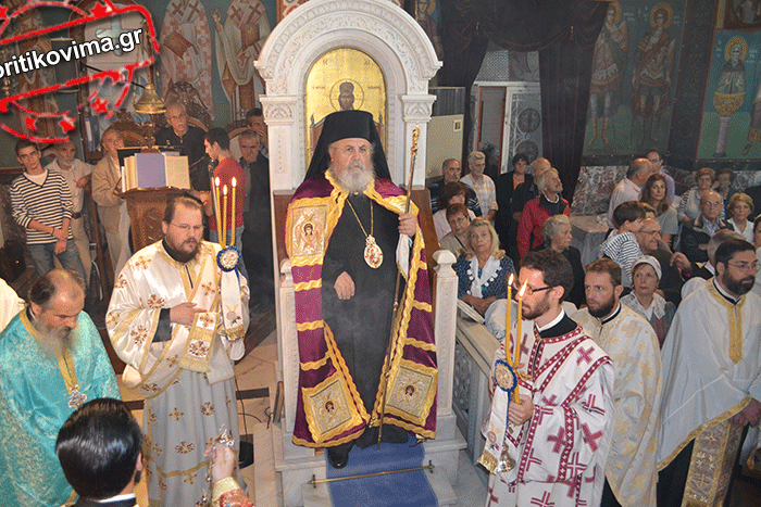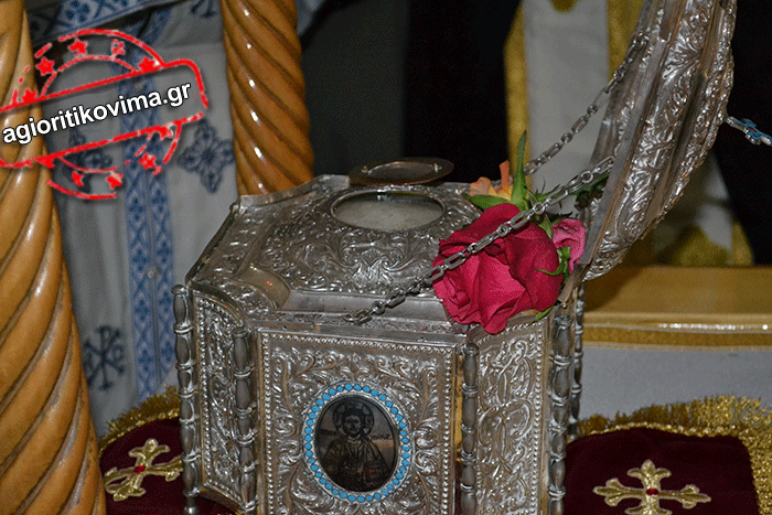 Ακολούθησε Αρχιερατικός εσπερινός .Το Αγιο Λείψανο μεταφέρθηκε στην πρωτεύουσα από την ομώνυμη Ιερά Μονή Αγ. Ραφαήλ , Νικολάου και Ειρήνης Λέσβου και θα παραμείνει στον Ιερό Ναό μέχρι της 19 Οκτωβρίου το Μεσημέρι , κατά την διάρκεια της παραμονής της Τιμίας Κάρας στον Ναό μας θα τελούνται Ιερές Ακολουθίες από 7:00 το πρωί έως τις 9:00 το Βραδύ όπου και θα παραμένει ανοικτός ο Ναός» .