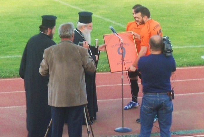 Από την πλευρά της ομάδας της Κοκκινόραχης ο Γενικός Γραμματέας κ. Νικόλαος Καρμοίρης και ο Ταμίας κ. Χριστόφορος Βεργόπουλος ευχαρίστησαν τον σεπτό Ποιμενάρχη για την παρουσία του και για όλα όσα έχει προσφέρει στο χριστεπώνυμο πλήρωμα της τοπικής Εκκλησίας, ενώ του προσέφεραν ως συμβολικό δώρο, μία φανέλα της ομάδας τους με τον αριθμό ‘’9’’, όσα δηλαδή είναι και τα φιλανθρωπικά ιδρύματα της Ιεράς Μητροπόλεως.