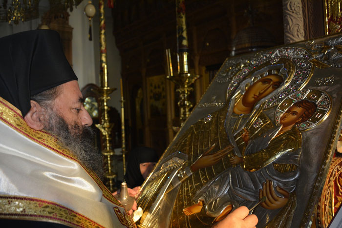 Κατά την διάρκειας της παραμονής τους, όπου έτυχαν θερμής υποδοχής και φιλοξενίας υπό της μοναστικής αδελφότητος, καθαγίασαν με το Άγιο Μύρο το αντίγραφο της εικόνος της Παναγίας της Γοργοϋπηκόου, η οποία είχε ευλογηθεί πρώτα στο Περιβόλι της Παναγίας και πιο συγκεκριμένα εις την Ιερά Μονή Δοχειαρίου, όπου και ευρίσκεται η πρωτότυπος.