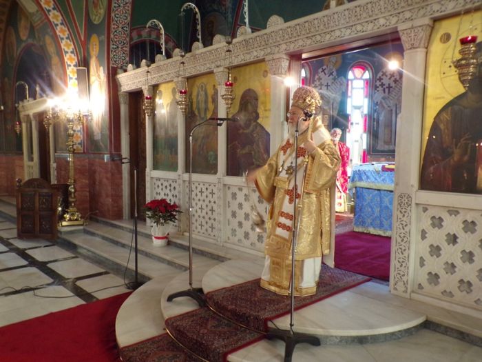 Μετά το πέρας της Θείας Λειτουργίας ο Σεβ. Ποιμενάρχης, επισκέφθηκε τμήμα του Κατηχητικού Σχολείου της Ενορίας και αφού ομίλησε και ευχήθηκε εόρτια μοίρασε ευλογίες στα παιδιά.