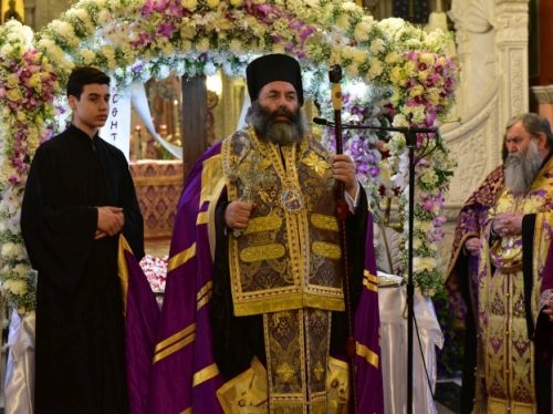 Πλήθη πιστών συμμετείχαν εις την Ιερά Ακολουθία, παρακολουθώντας ευλαβικά με κατάνυξη και συγκίνηση μία από τις κατανυκτικότερες τελετές που λαμβάνουν χώρα στην Ορθόδοξη Λειτουργική Παράδοση, τον Εσπερινό της Αποκαθηλώσεως, καθώς περίμεναν με περισσή υπομονή για να προσκυνήσουν τον εναποθετημένο Σώμα του Κυρίου στον λαμπρά κοσμημένο και ανθοστόλιστο Επιτάφιο του Μητροπολιτικού Ναού, ψάλλοντας το Δοξαστικό «Σε τον αναβαλλόμενον…».