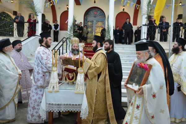 Την παραμονή των εγκαινίων, Παρασκευή 17 Οκτωβρίου ε.έ., εκομίσθησαν υπό του Θεοφιλεστάτου Επισκόπου Θερμών κ.κ. Δημητρίου τα Μαρτυρικά Λείψανα και εναποτέθηκαν επί του Αγίου Δισκαρίου όπως ορίζει το τυπικό των Εγκαινίων, ψάλλοντας την ειδική Ακολουθία της υποδοχής των Λειψάνων η οποία περιέχει Μαρτυρικά τροπάρια εντός του Ιερού Βήματος και εν συνεχεία τελέσθηκε ο Πανηγυρικός Αρχιερατικός Εσπερινός κατά την διάρκεια του οποίου ο Θεοφιλέστατος Επίσκοπος, αναφέρθηκε στην σημασία των Εγκαινίων τονίζοντας πως οι Μάρτυρες και οι Νεομάρτυρες των οποίων τα Λείψανα τοποθετούνται εντός του φυτού της Αγίας Τραπέζης θα πρέπει να είναι φωτεινά παραδείγματα και οδοδείκτες στην ζωή του κάθε ανθρώπου.
