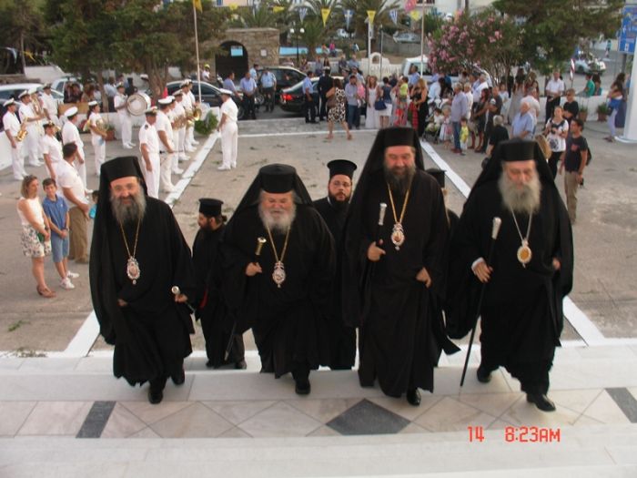 Στο τέλος της Ιεράς Λιτανείας (η οποία κατέληξε στον Ιερό Μητροπολιτικό Ναό Ζωοδόχου Πηγής) ο κ.Καλλίνικος ευχήθηκε δια πρεσβειών του Αγίου μας την κατά Θεόν πρόοδο καί πνευματική προκοπή όλων των παρισταμένων, των απανταχού Ναξίων αλλά και όλου του Ελληνικού λαού ιδιαίτερα αυτές τις δύσκολες και κρίσιμες μέρες που περνάει το Έθνος μας και ευχαρίστησε θερμά τους προσκεκλημένους Αρχιερείς, τους προαναφερθέντες επισήμους και όλους εκείνους που βοήθησαν για την διοργάνωση των εορταστικών εκδηλώσεων. Ιδιαίτερα ευχαρίστησε την Φιλαρμονική του Λιμενικού Σώματος που με την φροντίδα της Ηγεσίας του λάμπρυνε και φέτος την Πανήγυρη.