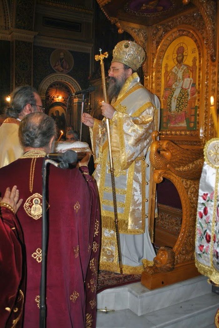 Μέσα σε ατμόσφαιρα πανηγυρική, πλήθος κόσμου προσήλθε στον Ιερό Ναό να αναπέμψει ύμνους ευχαριστίας στην Υπεραγία Θεοτόκο, που συμμετείχε στο έργο της Θείας Οικονομίας της Σαρκώσεως του Υιού και Λόγου του Θεού, ως μητέρα του Σωτήρος μας Ιησού Χριστού. Μετά το πέρας της Θείας Λειτουργίας, ο Σεβασμιώτατος επαίνεσε τον εφημέριο του ναού μας π. Μιχαήλ Καραγιάννη, προχειρίζοντάς τον Πρωτοπρεσβύτερο της Ιεράς Μητροπόλεώς μας.
