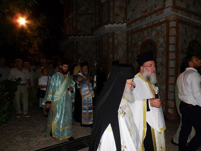 Την Παρασκευή το απόγευμα, 14 Αυγούστου 2015, ο Σεβ. Μητροπολίτης μας κ. Διονύσιος, κατόπιν προσκλήσεως του Γέροντος και Καθηγουμένου της Ι. Μονής «Παναγία η Πάντων Χαρά» Καλεντζίου, Πανοσ. Αρχιμ. κ. Προκοπίου Μερτύρη, χοροστάτησε στον Πανηγυρικό Εσπερινό, που τελέστηκε στο Καθολικό της Ι. Μονής. Στο πολυπληθές εκκλησίασμα, που κατέκλυσε την Ι. Μονή για να τιμήσει την Παναγιά μας, ο Σεβ. Μητρ. Κορίνθου απεύθυνε λόγους στηρικτικούς αναφερόμενος στο πρόσωπο της Θεομήτορος και στην ιδιαίτερη και διαχρονική σημασία που έχει για τον Ελληνισμό.