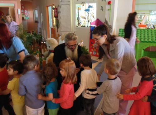 Ο Μητροπολίτης ευχήθηκε μετά το πέρας του Αγιασμού στα μικρά παιδιά να έχουν μία καλή σχολική χρονιά, να μάθουν πολλά και καλά πράγματα από τις δασκάλες τους και γενικά ο Άγιος Στυλιανός, ο προστάτης του Σταθμού να τους συντροφεύει και να τους προστατεύει από κάθε κακό στη ζωή τους. Στο τέλος οι δύο Μητροπολίτες ευλόγησαν και αγίασαν όλα τα παιδιά του Βρεφονηπιακού Σταθμού και του Νηπιαγωγείου και τους δώρισαν από ένα πακετάκι με σχολικά είδη. Ο Μητροπολίτης κ.Ανθιμος ξενάγησε τον Σεβασμιώτατο κ. Παύλο στους χώρους του Ιδρύματος και φωτογραφήθηκαν με τα μικρά παιδιά στις αίθουσες διδασκαλίας τους.