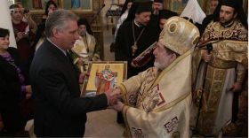 Ιδαίτερα αναφέρθηκε στην ευγενή και στενή σχέση που αναπτύσσεται μεταξύ της Κυβέρνησης της Κούβας και της Ελληνικής Ορθόδοξης παρουσίας στην χώρα, στο πρόσωπο του Μητρ. Αθηναγόρα.