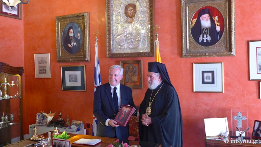 Ο κ. David D. Pearce αναγνώρισε το σημαντικό έργο, που προσφέρει η Εκκλησία της Ελλάδος στις ευπαθείς ομάδες του πληθυσμού και εξέφρασε το θαυμασμό του γιά τη Σύρο και την ιστορία της, καθώς και για τα υπόλοιπα νησιά των Κυκλάδων.