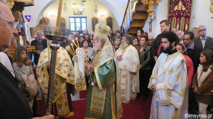 Αναφέρθηκε, επίσης, με λόγους επαινετικούς και ευγνώμονες, προς την κεκοιμημένη ευσεβεστάτη Πρεσβυτέρα, της οποίας το τεσσαρακονθήμερο Μνημόσυνο ετέλεσε.