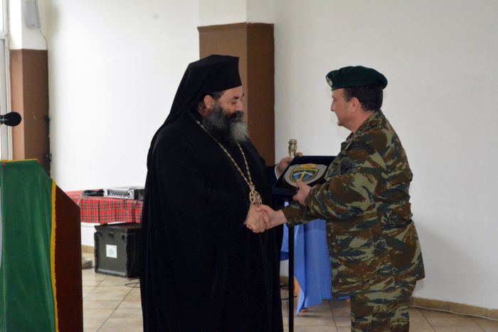 Τον Σεβασμιώτατο υποδέχτηκε ο Υποδιοικητής της 1ης Ταξιαρχίας Συνταγματάρχης Πεζικού Κυριακίδης Χαρ., και αφού ξεναγήθηκε στους χώρους και τις εγκαταστάσεις της Ταξιαρχίας είχε την ευκαιρία να μιλήσει κατ΄ιδίαν τόσο με τους αξιωματικούς όσο και μετά στελέχη και τους οπλίτες που απαρτίζουν την μονάδα.
