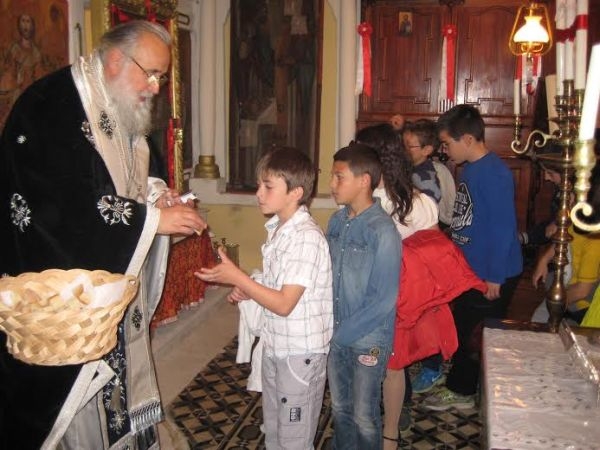 Ο Σεβασμιώτατος, ευχαρίστησε ολοκαρδίως τα παιδιά για την ήσυχη συμμετοχή τους στην ακολουθία της Εκκλησίας μας και είπε: "Σας έχω στην καρδιά μου χρεωμένους και προσεύχομαι για εσάς τα μικρότερα και τα μεγαλύτερα παιδιά". Έπειτα ευχαρίστησε και τους εκπαιδευτικούς για την παρουσία τους και το σπουδαίο έργο που επιτελούν στην κοινωνία των Παξών. Με την διανομή του αντιδώρου, ο Σεβασμιώτατος μοίρασε σαν ευλογία εικόνες του Αγίου Σπυρίδωνος στα παιδιά του Δημοτικού, ενώ σε καθένα από τα μεγαλύτερα παιδιά, Γυμνασίου και Λυκείου, χάρισε την Καινή Διαθήκη, ευχόμενος για την πρόοδό τους.