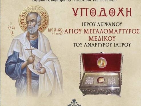 Το ιερό λείψανο του Αγ. Μεγαλομάρτυρος Μεδίκου θα βρίσκεται από τις 24 Ιουνίου στον Ι.Ν. Αγ. Τρύφωνος Καματερού. Αναλυτικά: