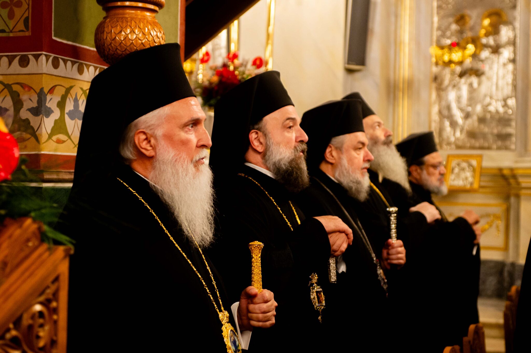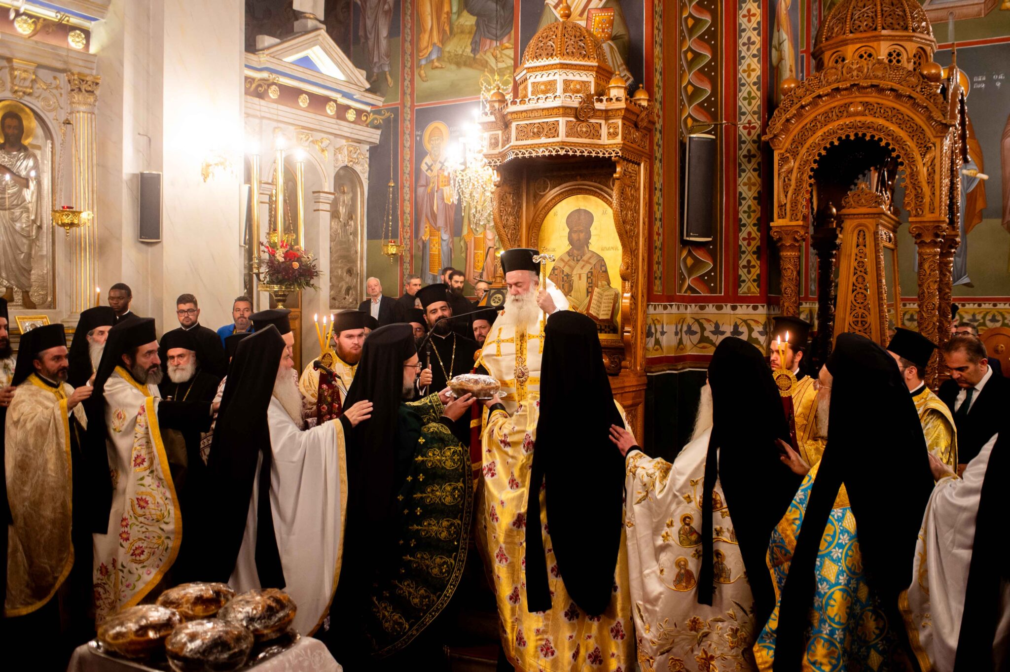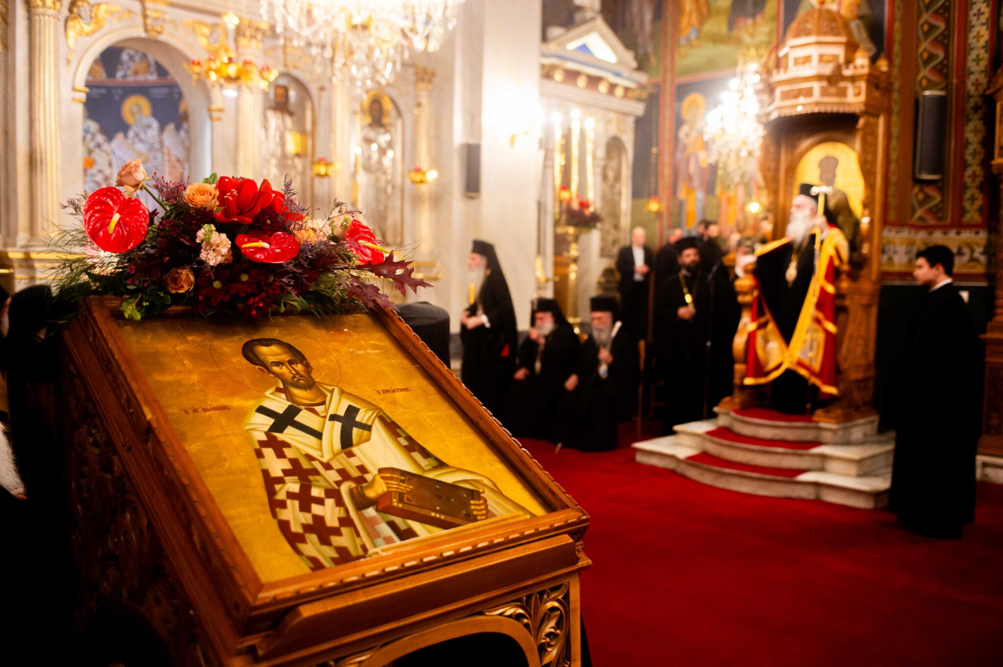 Του Εσπερινού χοροστάτησε ο Μητροπολίτης Κορίνθου κ. Παύλος, ενώ συλλιτούργησαν οι Μητροπολίτες Μονεμβασίας και Σπάρτης κ. Ευστάθιος, Ξάνθης και Περιθεωρίου κ. Παντελεήμων, Πειραιώς κ. Σεραφείμ, Ιλίου και Πετρουπόλεως κ. Αθηναγόρας, Κηφισίας κ. Κύριλλος, Μαρωνείας κ. Παντελεήμων, Μεγάρων κ. Κωνσταντίνος, Καρθαγένης κ. Μελέτιος, Σταγών και Μετεώρων κ. Θεόκλητος, Φθιώτιδος κ. Συμεών, Λήμνου κ. Ιερόθεος, Πολυανής κ. Βαρθολομαίος, Θήρας κ. Αμφιλόχιος, Γόρτυνος κ. Νικηφόρος, καθώς και οι Επίσκοποι Αμορίου κ. Νικηφόρος και Αχελώου κ. Νήφων. Η πολυαρχιερατική παρουσία υπογράμμισε την ιδιαίτερη εκτίμηση που χαίρει ο Μητροπολίτης Μεσσηνίας στον ευρύτερο εκκλησιαστικό χώρο.