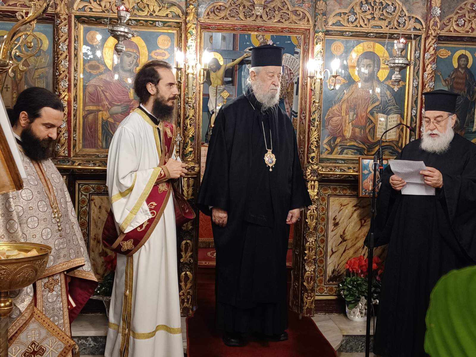 Μετά το πέρας της Θείας Ευχαριστίας εξ ονόματος κλήρου και λαού ο Γενικός Αρχιερατικός Επίτροπος της Ιεράς Μητροπόλεως Πρωτοπρ Ελευθέριος Σταμπέλος και εφημέριος του ιερού ναού προσφώνησε με λόγους ευχαριστίας σεβασμού και ευγνωμοσύνης για την σημερινή επέτειο της ενθρονίσεως του Σεπτού Ποιμενάρχου δια την οποία πρόσθεσε ο π. Ελευθέριος αποτελεί μία σημαντική ημέρα Σεβασμιώτατε όπου ενθρονιστήκατε στην ιερά μητρόπολη αλλά και στις καρδιές μας και όλων των πνευματικών τέκνων σας αλλά και για το ποιμαντικό και καρποφόρο έργο σας εις την ιερά μητρόπολη για το οποιο σας ευχαριστούμε που προσφέρετε έως και σήμερα.
