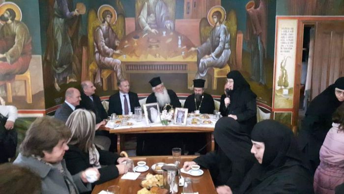 Ακολούθησε το μοναστηριακό κέρασμα στο αρχονταρίκι της ιεράς μονής όπου η Καθηγουμένη Παρασκευή Μοναχή εκ μέρους της αδελφότητος της ιεράς μονής ευχαρίστησε τους άγιους αρχιερείς και τους πιστούς που τίμησαν με την παρουσία και την προσευχή τους για την ανάπαυση των ψυχών των αειμνήστων ιεραρχών.