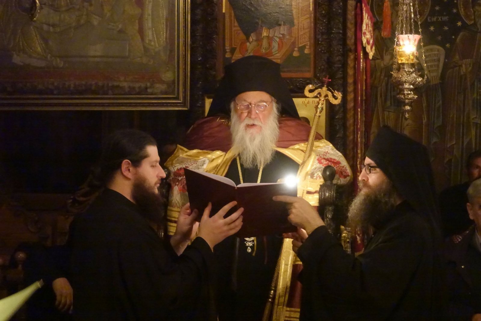 Κατά τη διάρκεια της νύκτας, ενώ εξωτερικά η Μονή καλυπτόταν από παχύ στρώμα χιονιού, στο εσωτερικό του καθολικού η πνευματική «θερμοκρασία» ανέβηκε αισθητά. Τα αγιορείτικα ακούσματα από τον Νεοσκητιώτη Γέροντα Δαμασκηνός και τη συνοδεία του, με τις μελίρρυτες φωνές τους, συνέβαλαν καθοριστικά στην κατανυκτική ατμόσφαιρα και στην ψυχική ανάταση των πιστών.