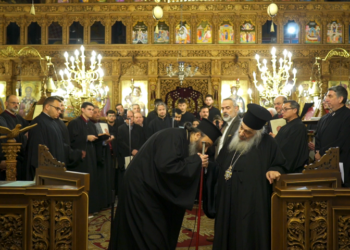 Τους εόρτιους ύμνους απέδωσε περίφημα ο Εκκλησιαστικός Χορός του ιερού ναού Αγίου Παντελεήμονος υπό τη διεύθυνση του πρωτοψάλτη κ. Ηλία Τούμπα.