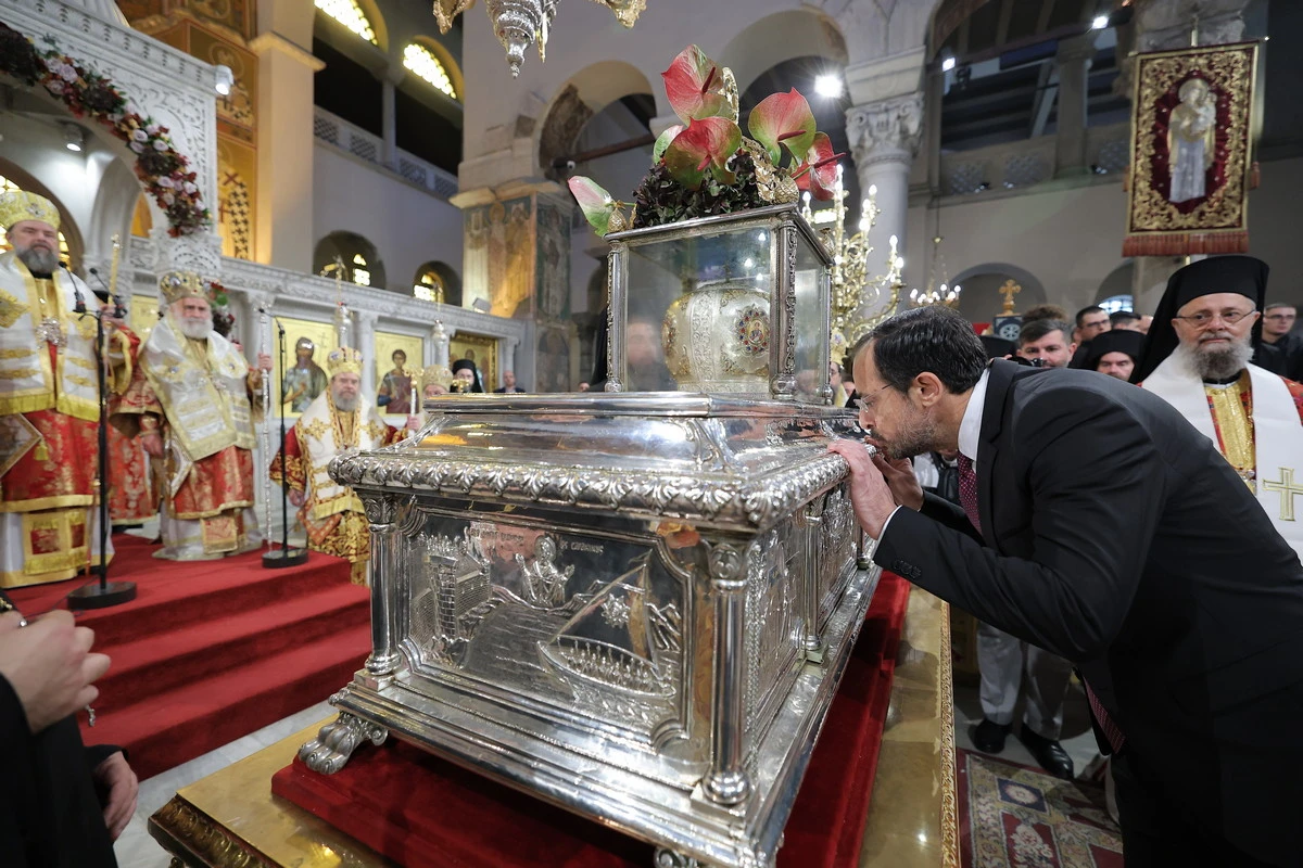 Καθώς ολοκληρώθηκαν οι λατρευτικές εκδηλώσεις, ο ναός πλημμύρισε από ψαλμούς και ευχαριστίες, ενώ πλήθος κόσμου προσκύνησε το ιερό λείψανο και το μυροβλύζον σημείο κάτω από το ιερό βήμα. Οι πιστοί έβγαιναν από τον ναό με συγκίνηση και δάκρυα στα μάτια, ψάλλοντας το γνωστό τροπάριο: