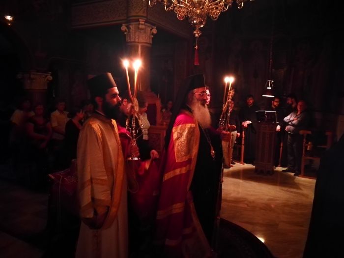 Ο Πανηγυρικός Εσπερινός, ο Όρθρος και η Θεία Λειτουργία τελέσθηκαν σύμφωνα με το μοναστηριακό τυπικό και ολόκληρη η ακολουθία κράτησε πάνω από έξι ώρες μέχρι τις 12.30′ μετά τα μεσάνυχτα.