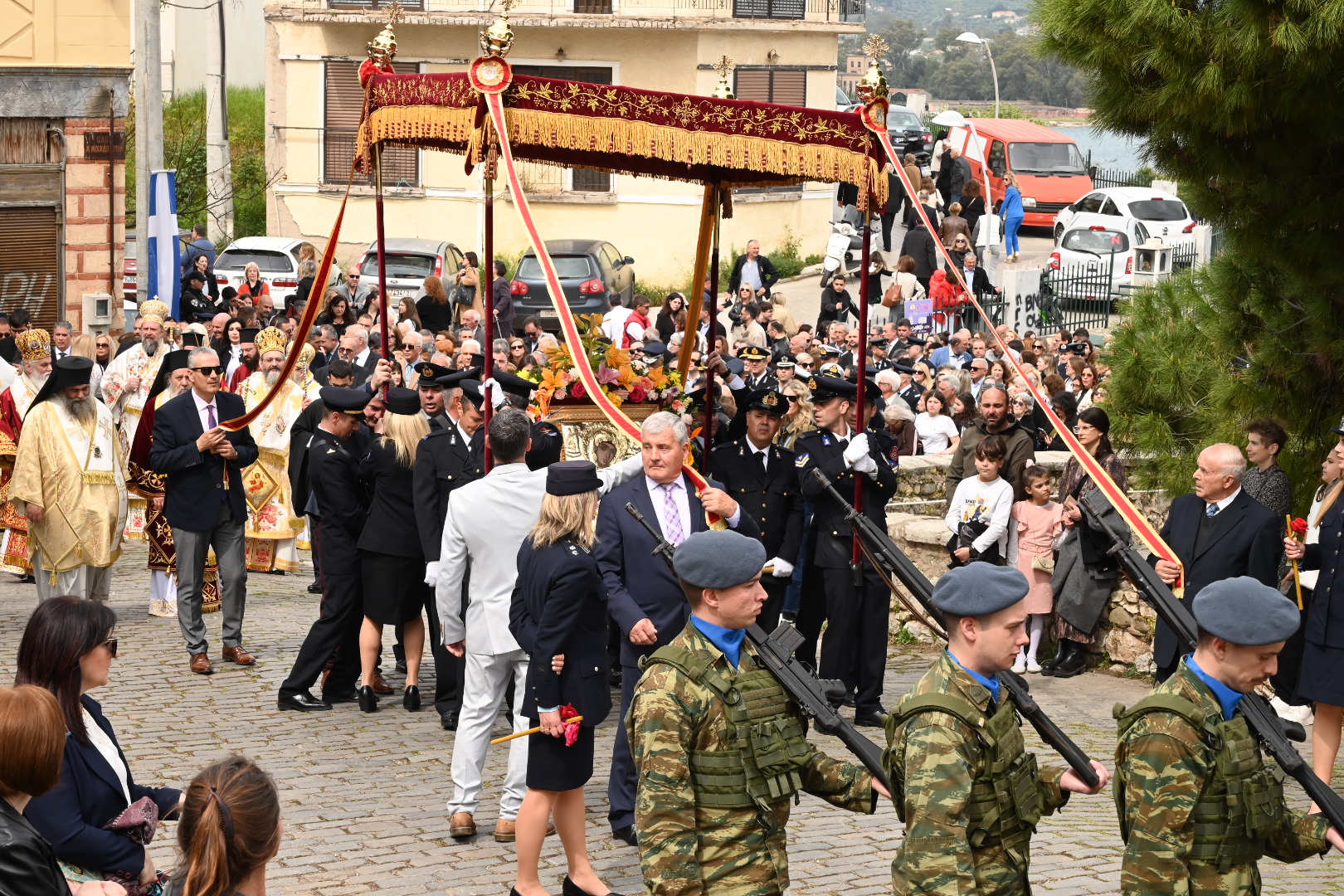 Ιδιαίτερη εντύπωση προκάλεσε η συμμετοχή αγημάτων των Ενόπλων Δυνάμεων, που απέδωσαν τιμές, καθώς και των φιλαρμονικών της περιοχής, οι οποίες έδωσαν ξεχωριστό ρυθμό στην πομπή. Όπως επισημαίνεται και από την Εκκλησία της Ελλάδος, τέτοιες εκδηλώσεις ενισχύουν τον δεσμό της κοινωνίας με την ορθόδοξη παράδοση και τις αξίες της.