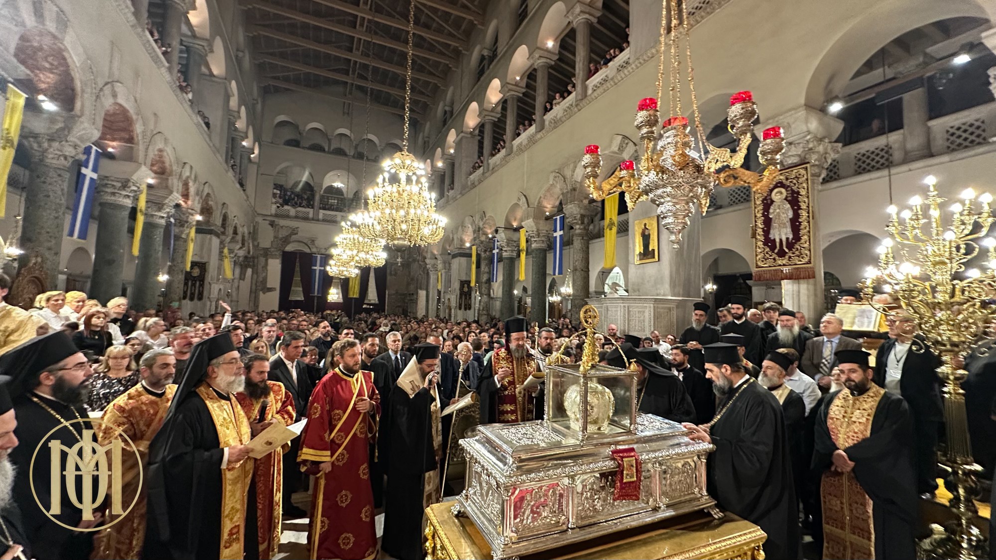 Από πολύ νωρίς ο μνημειακών διαστάσεων Ιερός Ναός του Πολιούχου κατακλύσθηκε από πλήθος πιστών, οι οποίοι προσήλθαν από πολλές περιοχές της πατρίδας μας και από διάφορα μέρη του ορθόδοξου χριστιανικού κόσμου.