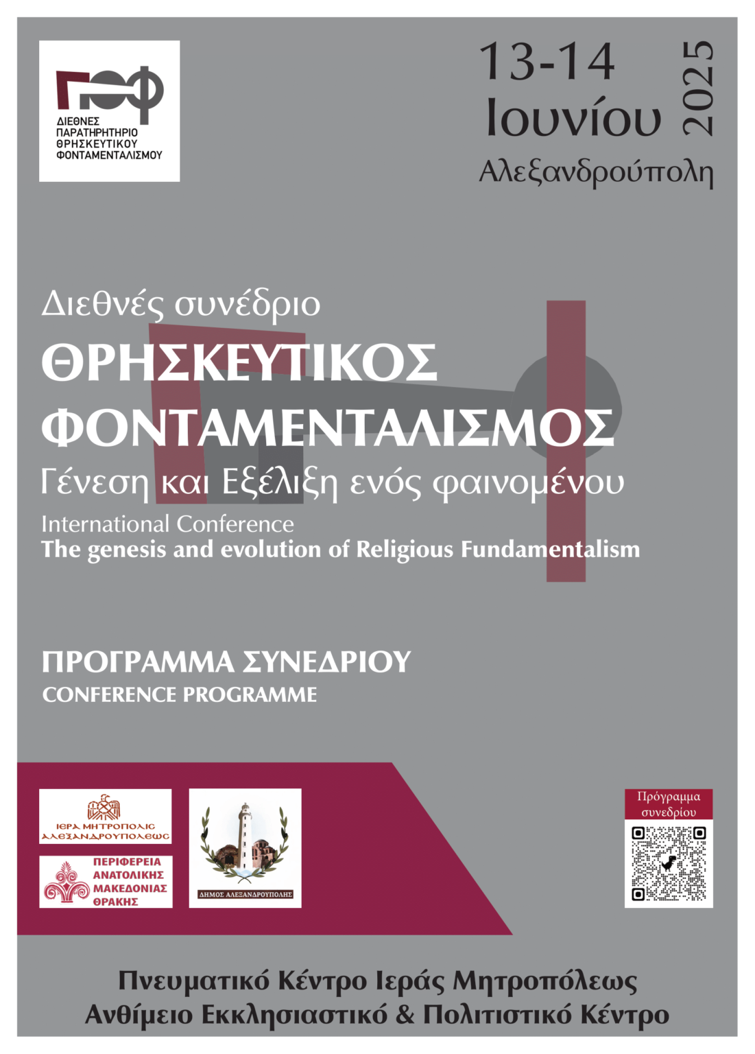 ΑΛΕΞΑΝΔΡΟΥΠΟΛΗ: Διεθνές συνέδριο με θέμα: «Θρησκευτικός Φονταμενταλισμός – Γένεση και Εξέλιξη ενός φαινομένου» θα πραγματοποιηθεί κατά το διήμερο 13-14 Ιουνίου 2025 στην Αλεξανδρούπολη, στο Πνευματικό Κέντρο της οικείας Ιεράς Μητροπόλεως.
