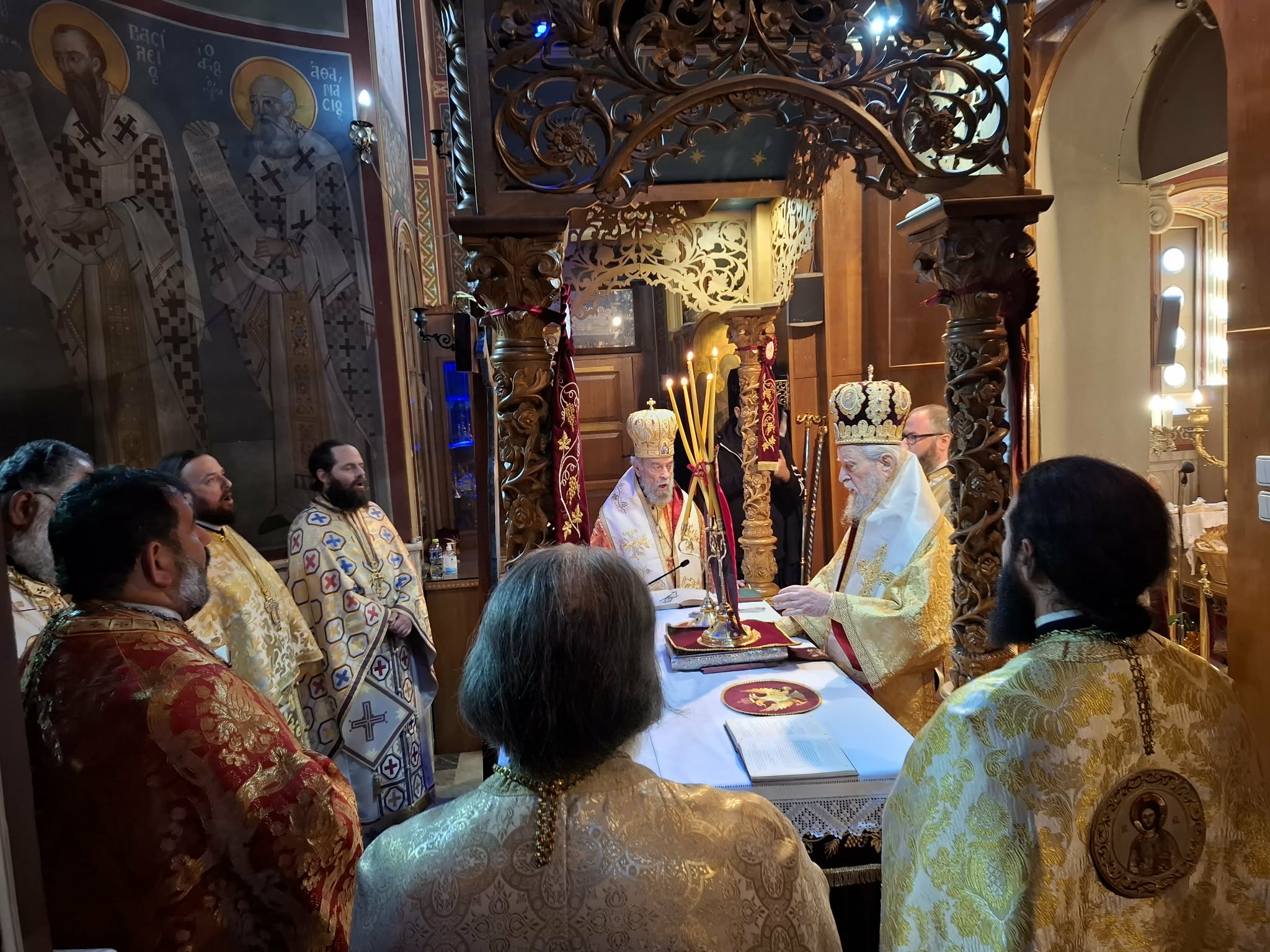 Έλαβαν χώρα το διήμερο 6 και 7 Φεβρουαρίου οι λατρευτικές εκδηλώσεις, με επίκεντρο της εορτής τον πανηγυρίζοντα ιερό ναό, όπου τελέστηκε ο Δισαρχιερατικός Εσπερινός, στον οποίο χοροστάτησε ο εκ του Οικουμενικού Πατριαρχείου Μητροπολίτης Ειρηνουπόλεως κ. Νίκανδρος, συγχοροστατούντος του Μητροπολίτου Καρυστίας και Σκύρου κ. Σεραφείμ, πλαισιούμενοι από τον Πρωτοσύγκελλο, Αρχιμ. Νικόδημο Πόγκα, τον Αρχιμ. Νεκτάριο Καπενή, τους Πρωτοπρ. Παύλο Κουντούρη, εφημέριο Παρθενίου, Ευάγγελο Βογιατζή, εφημέριο Αγίου Ιωάννου Αλιβερίου, Στυλιανό Πεταχτή, εφημέριο Καδδίου, Γεώργιο Νάνο, εφημέριο ιερού ναού Αγίου Αθανασίου Οξυλίθου, τους Οικονόμους Αριστείδη Ρούσσο, εφημέριο Διρρευμάτων, Χρήστο Αποστόλου, εφημέριο Τραχηλίου, και τους Πρεσβυτέρους Παναγιώτη Καμπόλη, εφημέριο Γαβαλά Αλιβερίου, Ανάργυρο Τσιπόκα, εφημέριο Πετριών, Ιωάννη Αντωνίου, εφημέριο ιερού ναού Αγίων Αναργύρων Οξυλίθου, και τον Πρωτοπρ. Γεώργιο Γιαννούλη, εφημέριο του ιερού ναού, ο οποίος επιμελήθηκε της εκκλησιαστικής τάξεως της πανηγύρεως στην ακολουθία του Εσπερινού.
