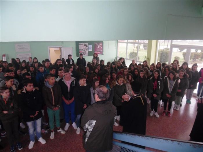 Τόνισε στους καθηγητές, μαθητές και μαθήτριες: «Τα αισθήματα χαράς που νοιώθω στην καρδιά μου, όταν σας συναντώ και συναναστρέφομαι μαζί σας, είναι απερίγραπτα. Η τοπική μας Εκκλησία θέλει και προσπαθεί με κάθε μέσον να είναι δίπλα σας. Σας ευχαριστώ για την εγκάρδια υποδοχή, που μου επιφυλάσσεται, κάθε φόρα που σας επισκέπτομαι. Δεν σας ξεχνώ, αλλά ζητώ κι από εσάς: Πάτε λίγο Εκκλησία».