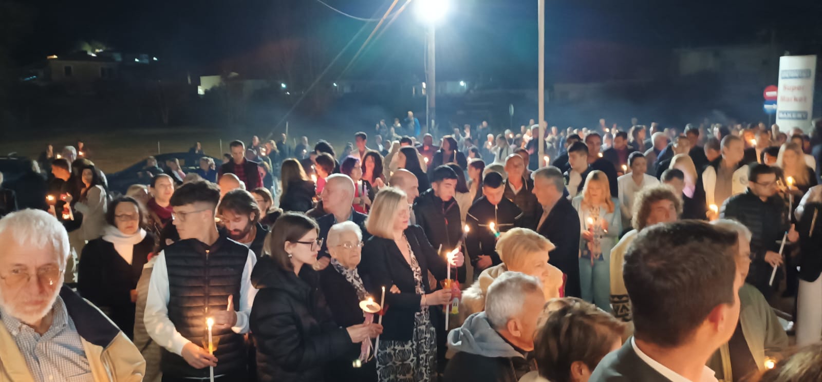 Οι χαρμόσυνες κωδωνοκρουσίες και οι λαμπάδες με το Άγιον Φως έστειλαν το μήνυμα της ελπιδοφόρου Αναστάσεως του Χριστού, ενώ ο ιερέας ευχήθηκε σε όλους ο Αναστάς Κύριος να χαρίζει υγεία και φώτιση.