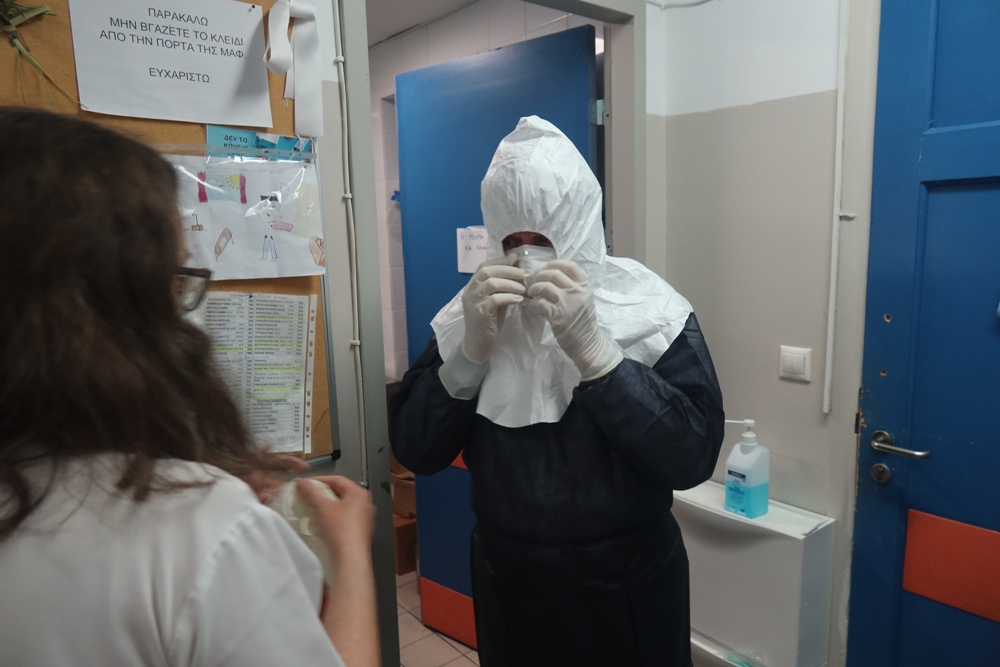 κατόπιν συνεννοήσεως με τη Διοίκηση του Νοσοκομείου, τους ιατρούς και τους νοσηλευτές της Μονάδος, τηρώντας τα προβλεπόμενα υγειονομικά πρωτόκολλα, τους ευχήθηκε ταχεία αποκατάσταση της υγείας τους και τους διένειμε πασχάλια αυγά και αναστάσιμες λαμπάδες.