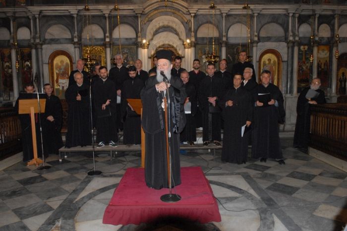 Την Εκδήλωση έκλεισε ο Σεβασμιώτατος Μητροπολίτης Χαλκίδος κ. Χρυσόστομος, τονίζοντας καταρχήν ότι, αν και, αφενός ο Σεβασμιώτατος άγιος Πτολεμαΐδος και αφετέρου οι άγιοι ιεροψάλτες προετοιμάσθηκαν ξεχωριστά για την εκδήλωση, εν τούτοις βρέθηκαν σε αδιάσπαστη ενότητα μεταξύ τους, αφού η πηγή αμφοτέρων υπήρξε η υμνολογική και υμνογραφική παράδοση της Εκκλησίας, δηλαδή μια τέχνη δοσμένη μέ Άνωθεν φωτισμό, που βοηθά τον πιστό νά μαθαίνει, να ικετεύει και να δοξάζει.