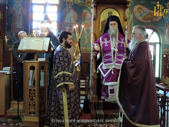 Την Παρασκευή 30 Μαρτίου 2018, το πρωΐ, στον Ιερό Ναό του Αγίου Δημητρίου Πέτα (Κυράτσα) Άρτης, ο Σεβασμιώτατος Μητροπολίτης Άρτης κ. Καλλίνικος ετέλεσε την Θεία Λειτουργία των Προηγιασμένων Δώρων.
