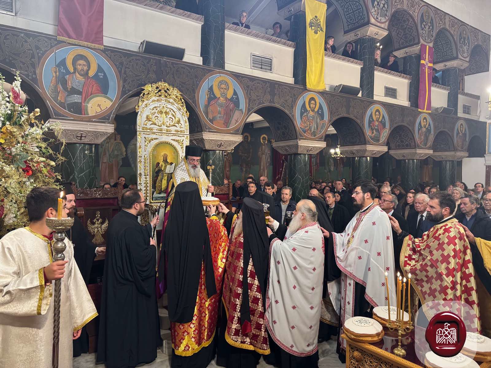 Στο τέλος της Θείας Λειτουργίας, ευλογήθηκε το κόλλυβο του Αγίου και μετά την απόλυση ο Μητροπολίτης μοίρασε το αντίδωρο στο εκκλησίασμα.
