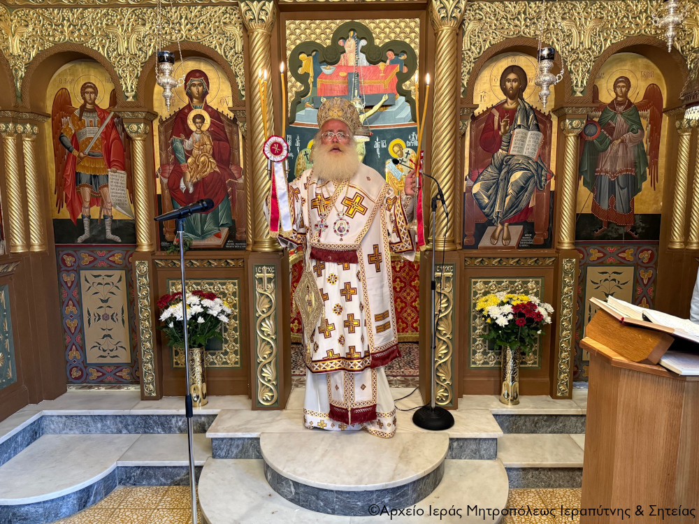 Πριν την Απόλυση ο Μητροπολίτης Ιεραπύτνης και Σητείας κ. Κύριλλος, πλαισιούμενος από τους συλλειτουργούντες κληρικούς, τέλεσε Τρισάγιο υπέρ αναπαύσεως των Προκατόχων του μακαριστών Αρχιερέων Φιλοθέου (Μαζοκοπάκη), του και κτήτορος, Φιλοθέου (Βουζουνεράκη) κα Ευγενίου (Πολίτη), των οποίων οι τάφοι βρίσκονται στην κρύπτη κάτω από το Ιερό Βήμα του πανηγυρίζοντος Επισκοπικού παρεκκλησίου.