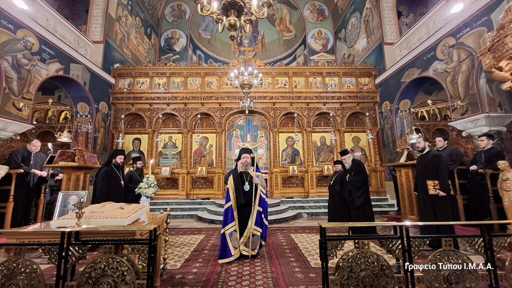 Κατά την απόλυση της Θείας Λειτουργίας τελέσθηκε το τεσσαρακονθήμερο Αρχιερατικό Μνημόσυνο της μακαριστής Ουρανίας Λανάρα, Ιδρύτριας και Προέδρου της Ορθοδόξου Φιλανθρωπικής Ιεραποστολικής και Πολιτιστικής Αδελφότητας «Η Αγία Φιλοθέη».